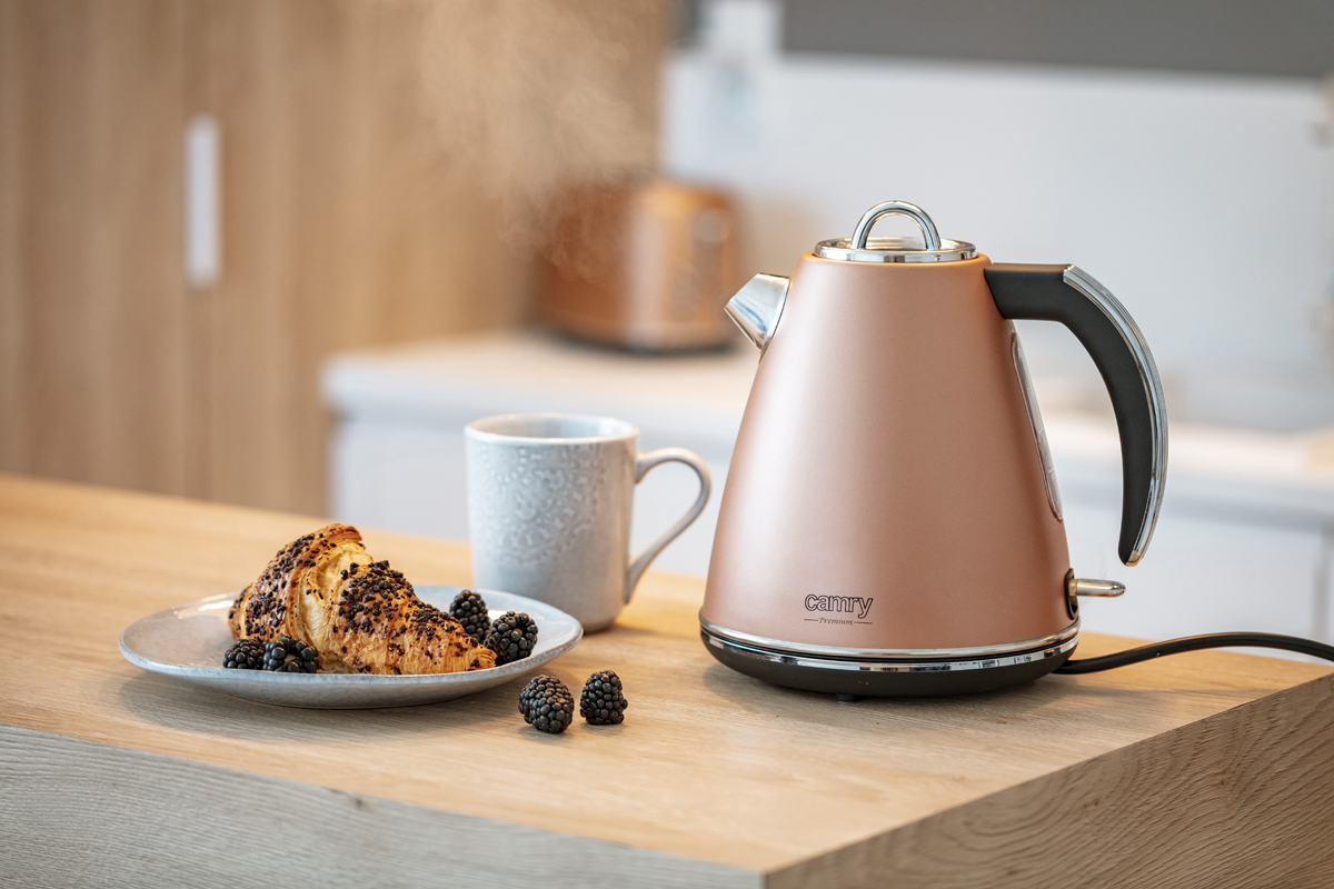 Czajnik dla całej rodzinyUrocze klasyczne wzornictwo to pierwsze, co rzuca się w oczy, gdy patrzymy na ten konkretny model. Design przypominający „czajnik z dzióbkiem”, ale elektryczny? Czemu nie?! Eleganckie metalowe elementy oraz ciekawe rozwiązanie związane z przykrywką przyciągają wzrok. Wygodna wyprofilowana rączka ułatwia bezpieczne przenoszenie czajnika i nalewanie wody. Na uwagę zasługuje fakt, że pojemność tego czajnika to aż 1,5 litra. Dzięki temu już podczas jednego gotowania przygotujesz herbatę czy kawę dla większej liczby osób. Jest to produkt idealny dla dużej rodziny. Maksymalna moc czajnika to 2220 W, więc gotowanie wody zajmuje chwilę. Obudowa ze stali szlachetnej zapewni trwałość użytkowania i sprawi, że czyszczenie urządzenia zajmie tylko kilka minut. Wystarczy mokrą ściereczką przetrzeć zewnętrzne ścianki czajnika. |