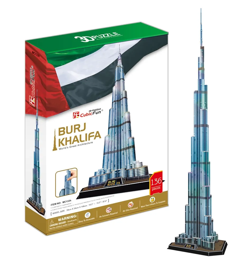 Puzzle 3D Burj Khalifa zestaw XXL 136 elemetów - wysokość aż 146cm !!Opakowanie zawiera puzzle 3D, które umożliwiają złożenie modelu - Burj Khalifa. Pasjonująca zabawa dla dzieci oraz kolekcjonerów najsłynniejszych budowli świata. Do ich złożenia nie potrzeba żadnych narzędzi. Puzzle są ponumerowane i znajdują się w specjalnych arkuszach. W opakowaniu znajduje się 136 elementów puzzli, wykonanych ze specjalnego materiału przypominającego piankę. Puzzle są ponumerowane,ponacinane i umieszczone na arkuszach. Wystarczy bez użycia siły wycisnąć element z arkusza i zmontować go zgodnie z dołączoną instrukcja, bez użycia kleju ani specjalnych narzędzi. |